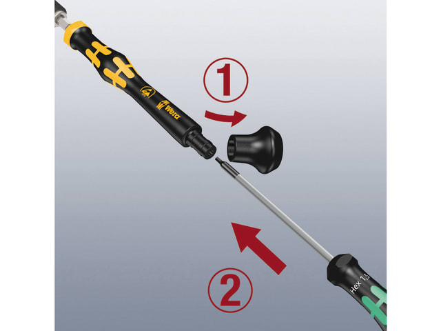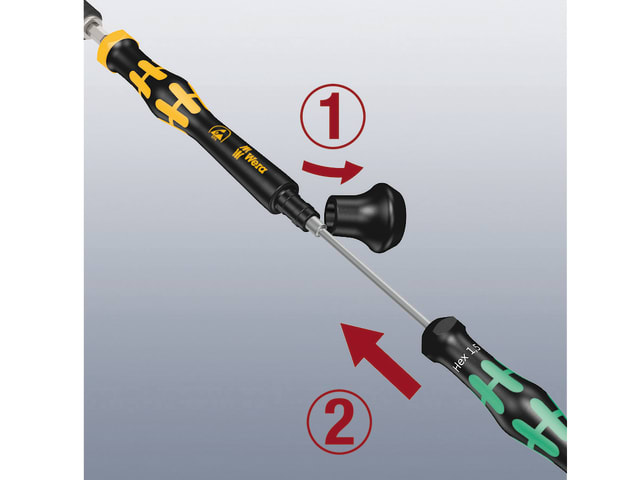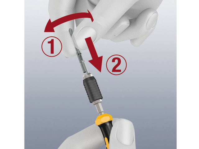 Suitable for the take-up of bits with 4mm halfmoon (Wera series 9) and 4mm HIOS (Wera series 21) drives.