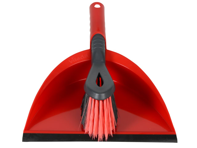 The Vileda 2-in-1 Dustpan and Brush Set is ideal for quick cleaning tasks. The dustpan features a flexible pan and rubber lip that helps to easily collect dirt on uneven floor surfaces. The brush has black bristles for sweeping hairs and dirt and has firmer, angled red bristles that are ideal for sweeping in corners and along edges.