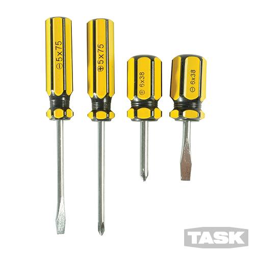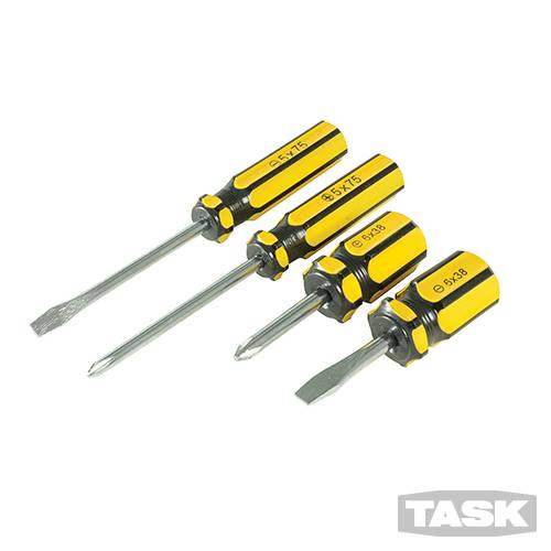 4-piece chrome-plated carbon steel screwdrivers with PVC handles. Each set inclu – 599651