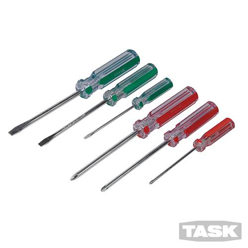 6-piece set of plastic-handled screwdrivers consisting of slotted flared tip: 3 – 282984