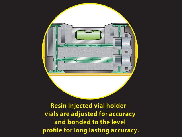2 vials – 1 plumb, 1 horizontal.