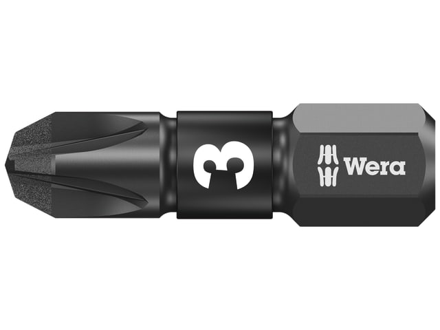 Wera Impaktor 855/1 Pozi bits 25mm long with 1/4in hexagon drive , suitable for DIN 3126-F 6.3, ISO 1173 bit holders.