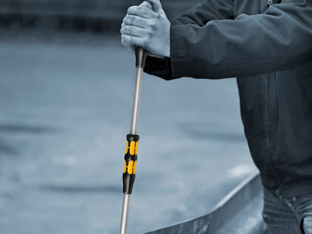 The Wera 8780 C Koloss Handle Extension has been designed to be used in conjunction with the Wera Koloss 8002 C to increase the applied torque. Fitted with a hexagonal, multi-component Kraftform® handle, optimised to withstand pressure and tensile loads. Made from tough, tempered chrome-molybdenum steel. Safety instructions are laser-engraved for permanent recognition.
