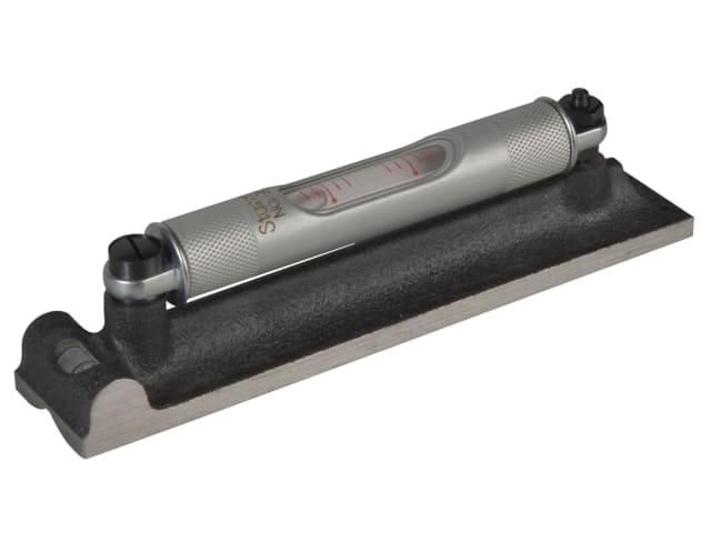 Supplied with accurate ground and graduated main vial and cross test vial. Adjustable to a positive setting the main vial is housed in a satin finished brass tube with a cover to prevent breakage. The level features an involute groove running the base length providing a reliable seat on cylindrical workpieces.