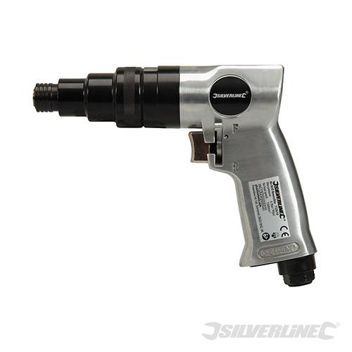 Compact and ergonomic reversible air screwdriver with pistol grip and forward/reverse lever for comfortable one-handed use