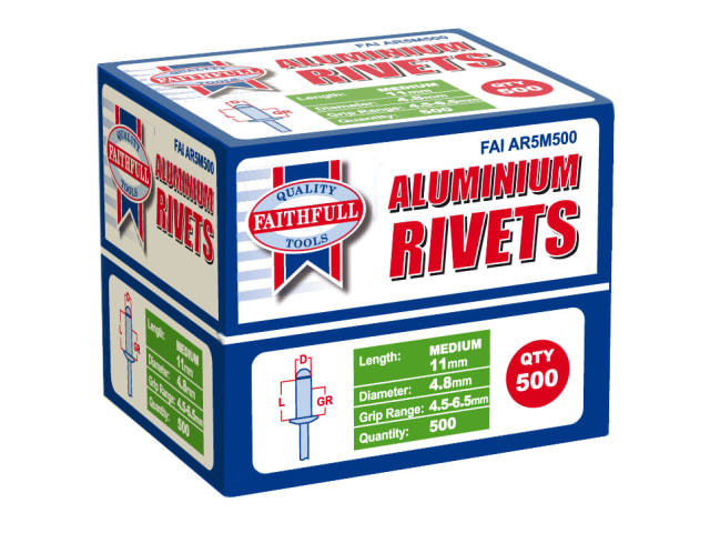 Aluminium Rivets 4.8 x 11mm Medium Bulk Pack of 500 FAIAR5M500