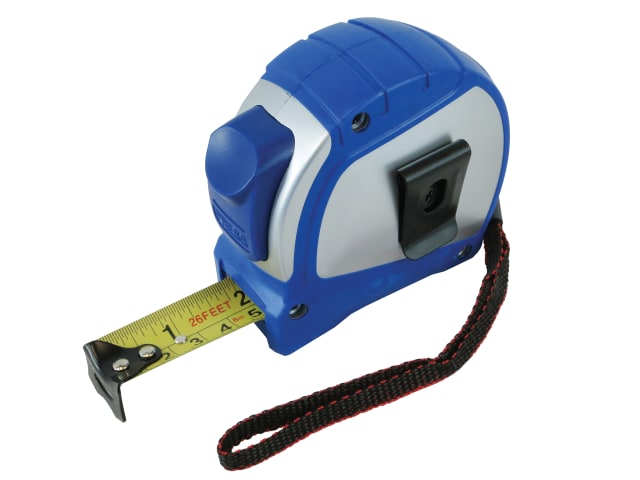 The ABS casing is tough, impact resistant and has a soft grip, TPR coating for added user comfort and is fitted with a bottom blade bump to help protect the blade as it is returned back in to its case. The tape also features a wrist lanyard and handy belt clip for close at hand storage.