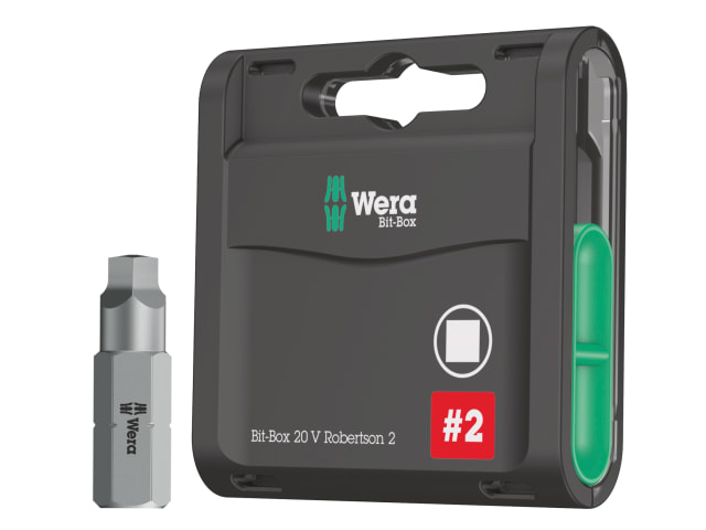 Wera 25mm Hard ‘H’ Robertson 2 Square Bits supplied in a Bit-Box, with a slide switch allows simple and gradual removal and reinsertion of the bits. The transparent reverse side provides an easy contents check. Designed for universal use in drill/drivers whilst offering an entry level performance. Thanks to a best-possible utilisation of the material properties, optimally designed geometry and hot forging Wera ‘Z’ bits deliver an extended service life especially if combined with Wera 897/4 torsion bit holders.