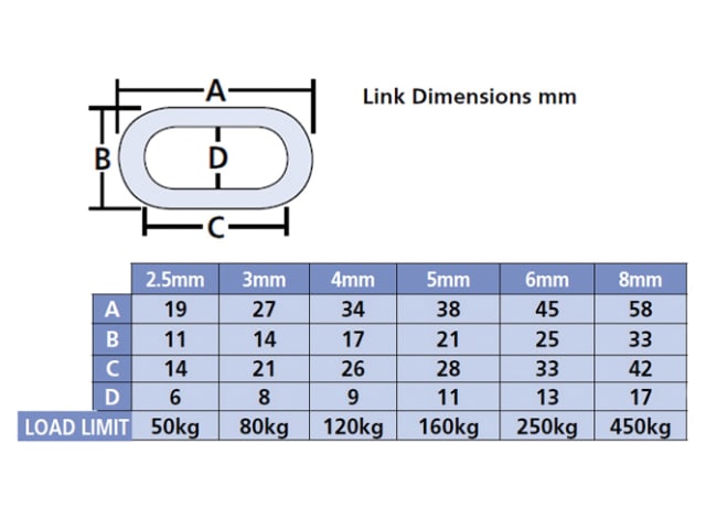These Faithfull Welded Chains are manufactured from a mild steel with a Black Japanned finish. These chains are load tested, but not certified and should never be used for any overhead lifting, load binding or towing applications.