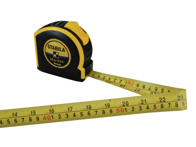 The Stabila BM 40 Pocket Tape is a solid, heavy-duty tape measure, that has a grit resistant steel blade coating, with metric and imperial measurements on both sides. Matt finish on the curved blade provides glare free measurements during particularly bright days. The blade is also fitted with an adjustable hook for accurate measurements.