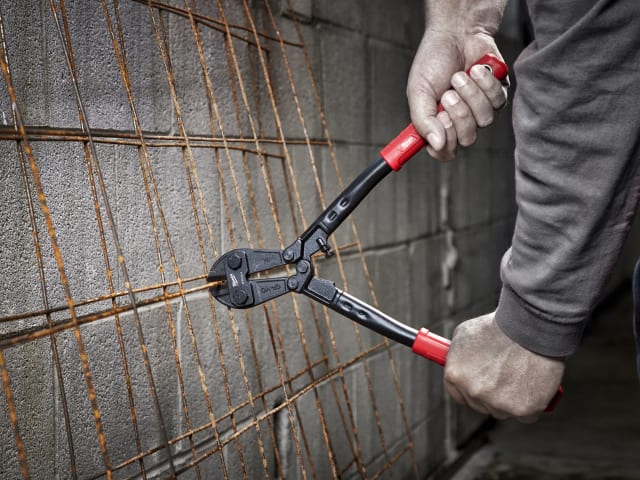 The Milwaukee Hand Tools Bolt Cutters with heavy-duty, forged steel blades, have a strong, durable cutting edge. A blade adjustment screw ensures high-performance and a long-life. Fitted with ergonomic handles, comfortable for repetitive use. The handles also feature lanyard holes for easy tethering.