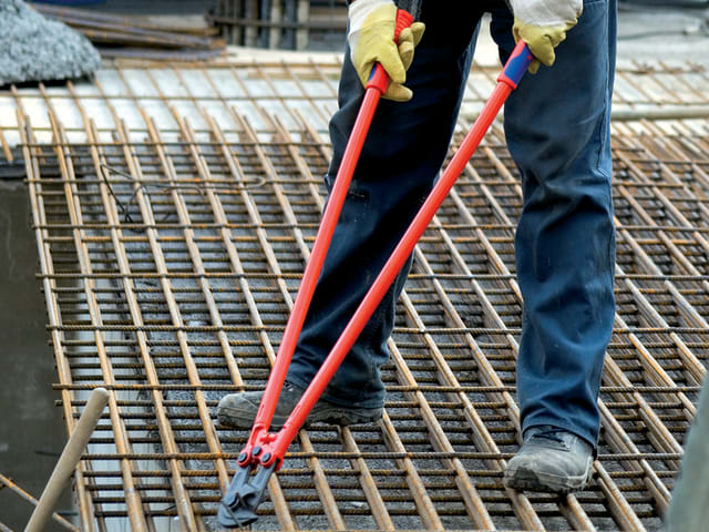 The Knipex Concrete Mesh Cutters have blades made from chrome vanadium, forged, oil-hardened, heavy-duty steel and have robust cutting edges that are additionally induction hardened to approx. 62 HRC. The handles are constructed from powder-coated steel tube and fitted with sturdy non-slip two-colour dual component handle sleeves.
