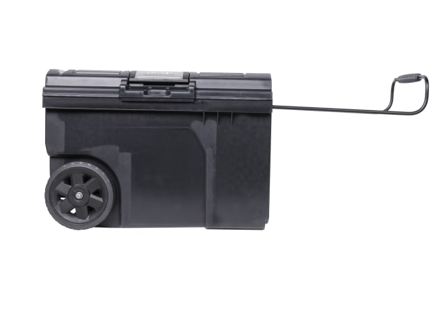 With durable 7 inch wheels that provide easy mobility, combined with the over moulded metal pull handle, it is easy to transport around the worksite. The chest features a bi-material handle on the top cover for convenient grip, and the v-groove in the lid that allows for easy cutting of materials.
