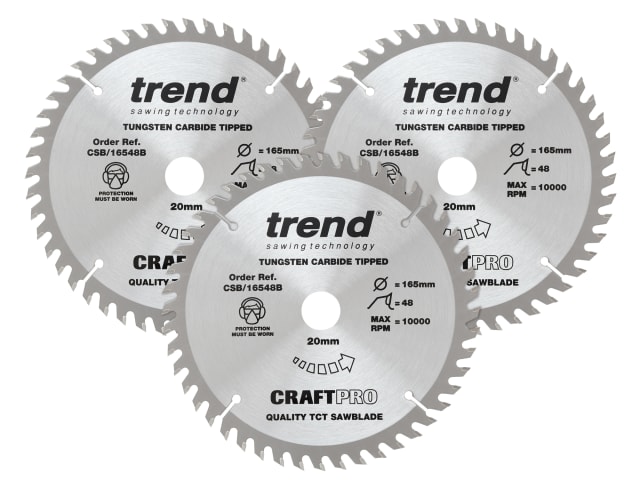 Pack of 3 Trend CraftPro CSB/16548B Plunge Saw Blades, with the following specification: