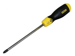 The Stanley Cushion Grip Phillips Tipped screwdrivers have a chrome plated bar which is corrosion resistant, and magnetic tips for easy pick up and screw locator.