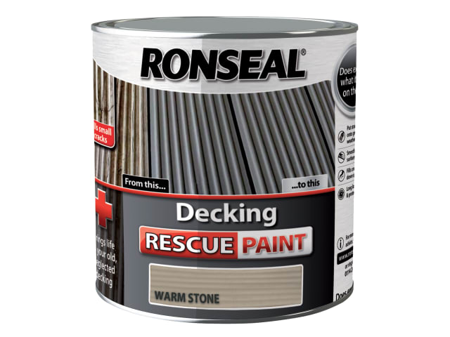 Ronseal Decking Rescue Paint gives old decking a new lease of life. It fills small cracks, seals down splinters and covers grey wood, making decking look as good as new.