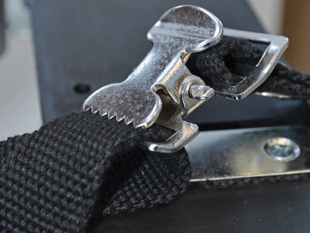 Manufactured from lightweight aluminium, they can be fitted in seconds using the quick-release straps and the working height is adjustable in six two-inch increments from 18 to 30 inches. (450 to 750mm)