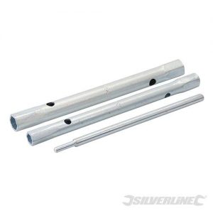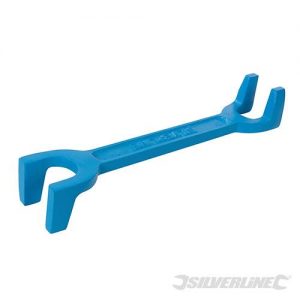 Double-cranked, corrosion-resistant galvanised carbon steel spanner for imperial and metric radiator fittings