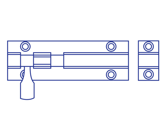 1. Position door bolt on the door face so that the end of the door bolt is in line with the door edge and mark the screw holes with a pencil.