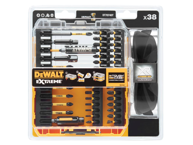 The DEWALT DT70740T FLEXTORQ™ Screwdriving Set contains a selection of EXTREME® FlexTorq™ screwdriving bits engineered for longer life. The built-in torsion zone has been designed to absorb and control high-impact forces, transferring them into the optimised geometry of the bit tip. Reducing the load on the driver and fastener, means secure fixing with longer life. The full fit head eliminates wobble and screw head rounding.