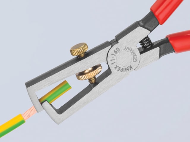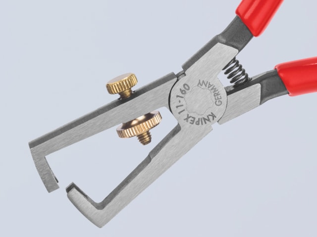 These Knipex strippers have a polished head with brass adjusting knob, with PVC dipped handles for added comfort and a better grip.