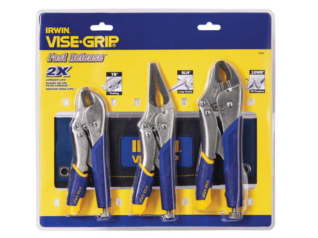 IRWIN Vise-Grip 3 Piece Fast Release™ Locking Plier Set supplied in a handy carry pouch, contains the following: