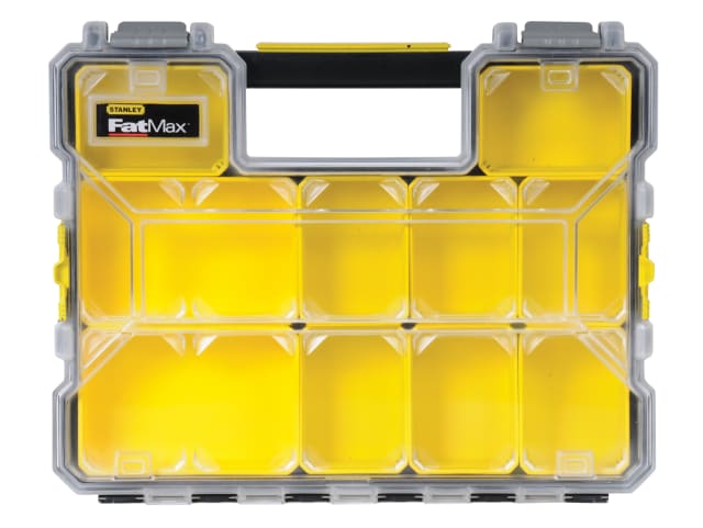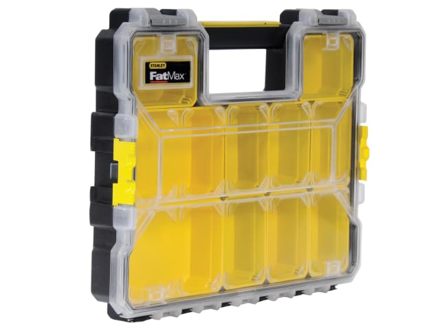 This Stanley FatMax® Professional Organiser is ideal for storing and organising small parts and accessories, such as fixings, nuts, bolts etc. It is supplied with 10 removable storage cups for easy access, allowing individual cups to be conveniently moved to where needed, without having to have the whole organiser near by – ideal for situations where space is limited.