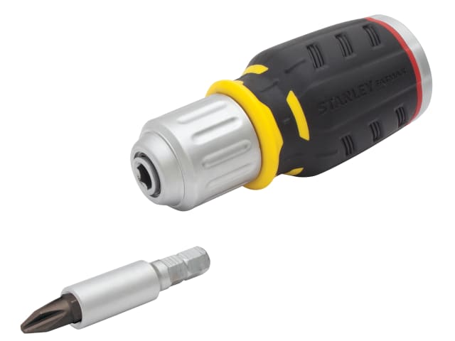 The Stanley FatMax® Stubby Ratchet Screwdriver is ideal for use in small, confined spaces. It has a large soft-grip handle that fits in the palm for comfortable use and it has a 3-position ratchet to allow right, left and fixed positions.