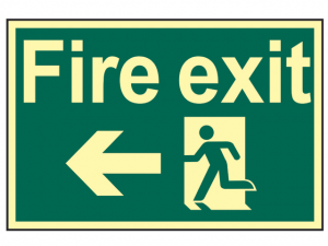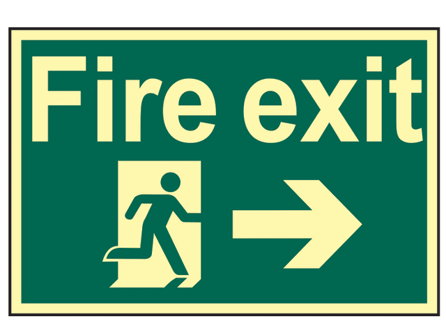 Message: ‘Fire exit’, featuring a right pointing arrow.