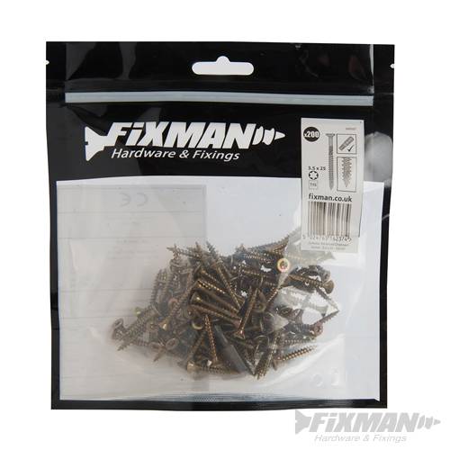 Fixman Goldstar Advanced Screws 3.5 x 25mm 200pk 595597 – DIY Materials – Silverline