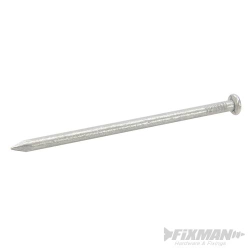 Hot-dip galvanised steel for rust resistance. Very strong round-head nails. Ideal for rough carpentry where appearance is not a priority. Approximately 154 nails per 1kg.