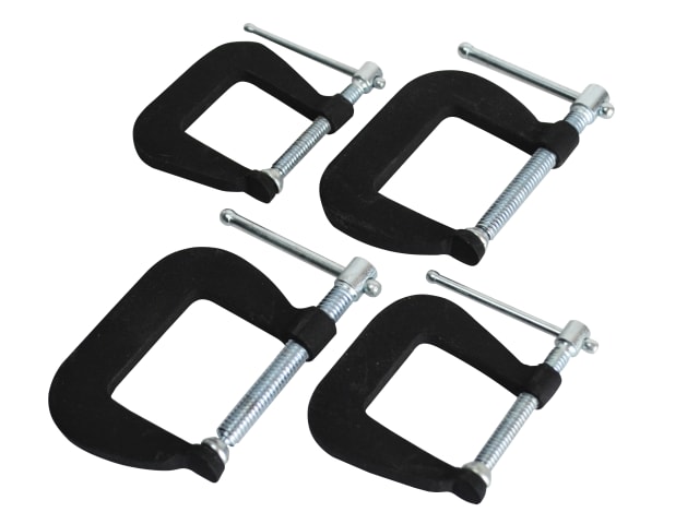 The Faithfull Forged Mini Clamp Set consists of 4 small sized G clamps. The strong and durable forged steel bodies have a powder-coated finish for increased resistance to corrosion. The handle, screw and swivel pad are chrome plated to resist rust. The design of the slim compact section is an advantage in a limited space. Suitable for a wide variety of metalworking, woodworking and model-making applications. Contains: