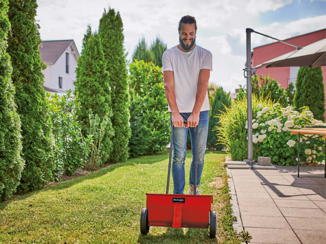 The Einhell GC-SR 12 Multi-Purpose Spreader enables you to distribute fertilizers, seeds or winter grit quickly and evenly. Its high-grade, impact-resistant plastic housing is resistant to both corrosion and weathering. Fitted with a double push bar for effortless guiding. Spring locks on both sides enable storage in small spaces and there is also an adjustment lever for regulating the distribution rate.