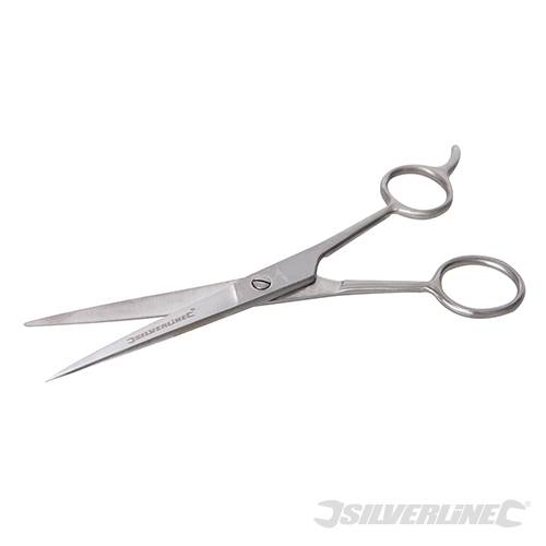 Stainless steel with precision-ground blades. Centre adjustment screw for tightening or taking apart blades for sharpening. Satin finish. For cutting & trimming hair.