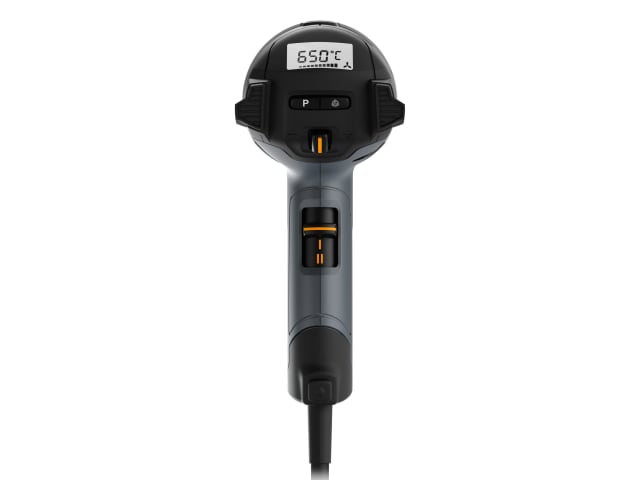 The Steinel HG2320E LCD Heat Gun offers a digital precision tool for temperature-critical materials. The ceramic heaters temperature can be infinitely varied over a range of 80-650°C at the thumbwheel. Integrated thermal cut-out eliminates the risk of overheating. Airflow can be controlled in 2 stages from 150–500 l/min.