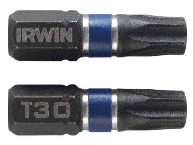 The Irwin TORX Impact Screwdriving Bits are specifically engineered for use in high torque Impact Drivers. They are manufactured from heavy-duty, high-grade steel and have a 3 times increased bit life compared to standard screwdriver bits.