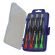 The mini set consists of seven precision soft-grip screwdrivers designed for use on small screws. Each screwdriver features a chrome vanadium steel blade with a black tip.