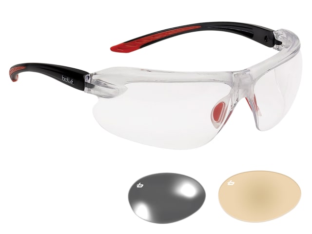 These Bollé Safety IRI-S PLATINUM® Safety Glasses have clear lenses. Approved for permanent wear and certified with perfect optical quality with anti-fog and anti-scratch coatings, 99.9% UVA/UVB protection.