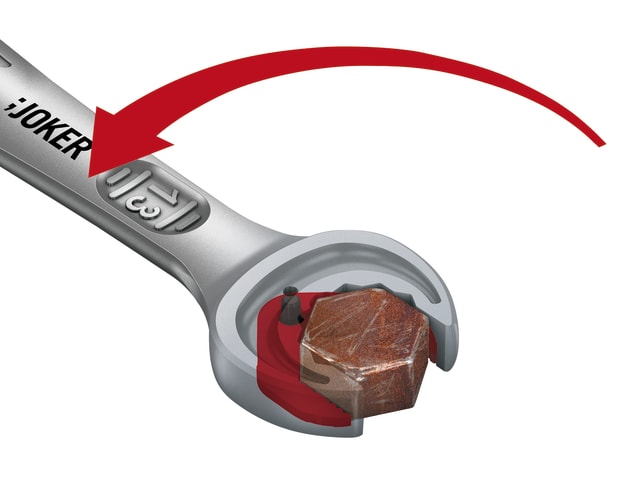 The Wera Joker is an innovative combination spanner with a unique jaw design. Its clever design means that it does everything that a conventional combination spanner does, and more. Made from durable chrome molybdenum steel and coated with corrosion resistant nickel-chrome, the Joker is a truly high quality spanner.