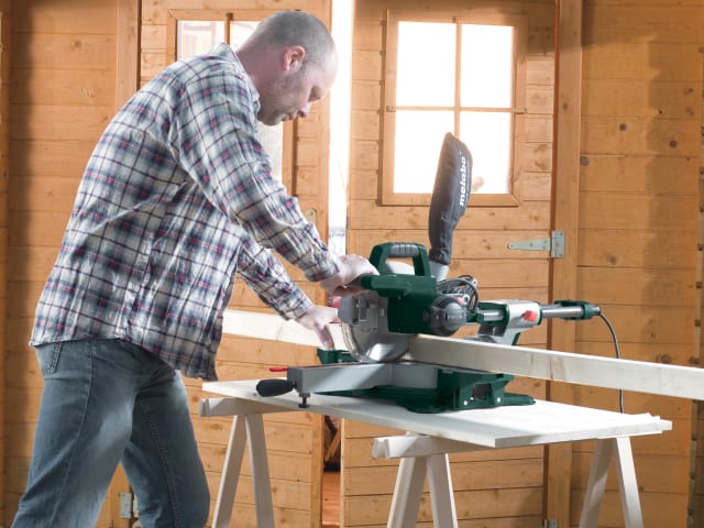 Its non-slip rubber surface on its handle and upper carry handle ensures excellent grip, and the saw also has lateral handles. For working in poorly lit areas, the mitre saw has an integrated working light. For accurate cutting, the saw has a laser for exact display of the cut, and all scales are visible from the working position. In addition the turntable allows precise angle adjustment, and it has integrated cutting depth control.