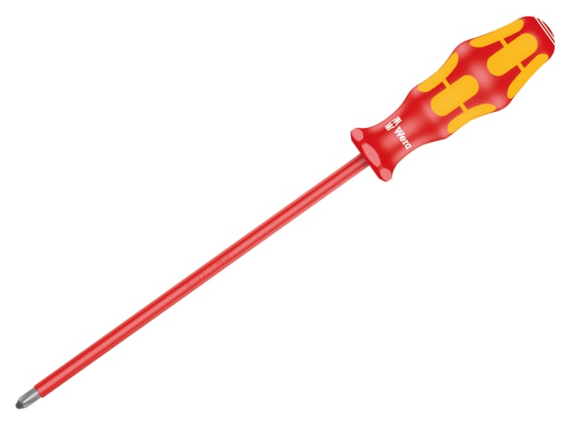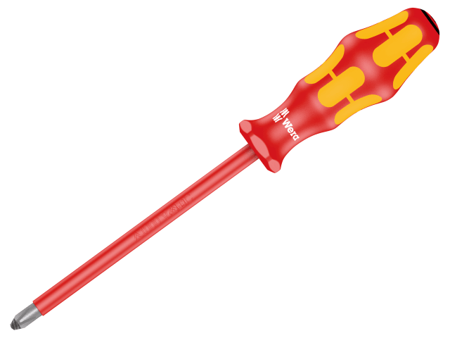 Wera series 162I Phillips insulated screwdrivers are tested individually for dielectric strength under a load of 10,000 volts so as to ensure safe working with loads up to 1,000 volts. They have a premium Lasertip, a tip which has a laser roughened surface which literally bites into the screwhead, reducing cam-out and eliminating the need for two-handed screwdriving.