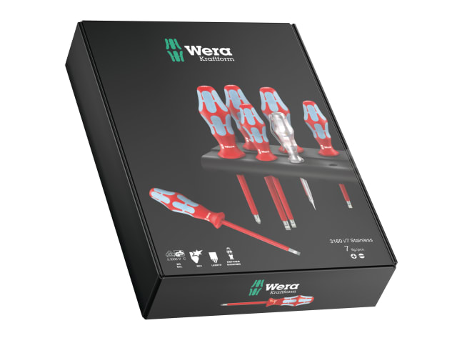 The Wera Kraftform Plus Lasertip 1,000 Volt VDE Electricians’ Stainless Steel screwdriver set is suitable for use with stainless steel screws. The use of stainless tools with stainless steel fasteners prevents the cross contamination of metal, preventing rust from a galvanic process. Anti-slip Lasertips significantly reduce the required screwdriving effort and prevent slipping from the screw head.