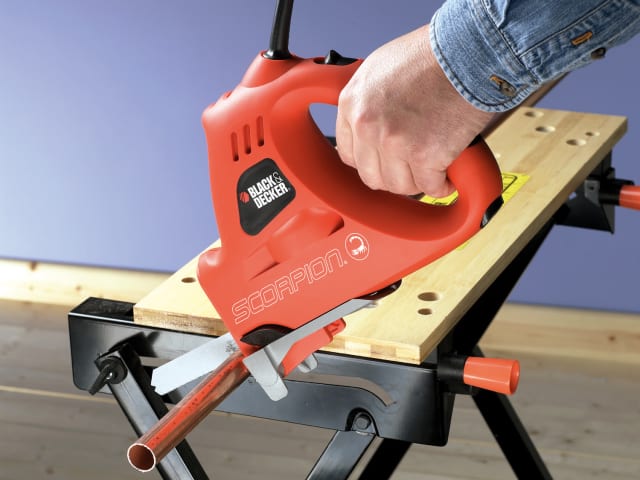 The Black and Decker KS890EK Scorpion Powered Handsaw cuts Time and cuts Effort. It has both powered Handsaw and Jigsaw modes which adds to its versatility and speed of use.