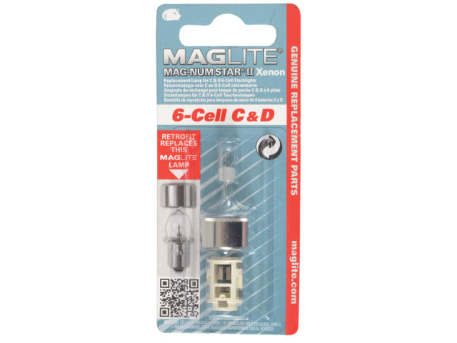 The Maglite LMXA601 6 Cell MAG-NUM STAR Xenon Replacement Bulb for 6D & 6C Maglite. They are up to 96% brighter than previous MAG-NUM STAR bulbs and use pressurised Xenon gas for improved efficiency. The blubs are fitted with a tougher glass housing and a stronger filament.