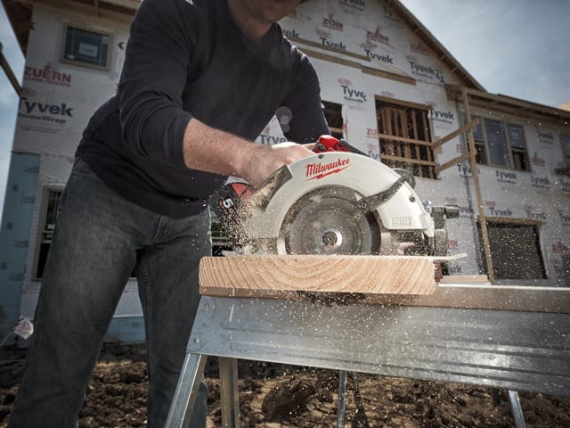The Milwaukee M18 BLCS66 Brushless Circular Saw is fitted with a pressed aluminium shoe for maximum durability. It uses a 190mm blade giving a 66mm depth of cut which enables the saw to cut 3 stacked 19mm OSB boards. An integrated LED light provides workspace illumination. Fitted with a durable metal rafter hang hook for workspace management and safety.