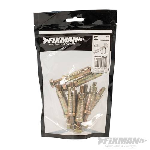 Heavy duty, yellow passivated expansion anchor with 4-way expansion shield for secure fixing. Torque-controlled for installation of racking, hand rails, barriers, storage systems, machinery and numerous other applications. For fixing into masonry and concrete, indoors and out. Supplied with shield, washer and bolt. Size guide: eg M8 – 35 x 90mm: (M8 = bolt size; 35mm = maximum material thickness the bolt will fasten; 90mm = length of fixing).