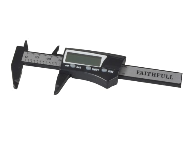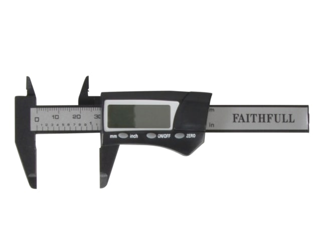 This Faithfull handy pocket-sized caliper is manufactured from a lightweight non-marring carbon fibre material. The digital selection button enables readings to be displayed in either metric or imperial format and will provide precision readings from 0.01mm and 0.0005in.