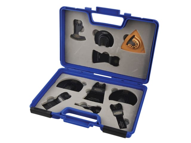 This 10 piece Faithfull Multi-Function Tool Blade Set contains a selection of the most popular blades for cutting wood, man-made boards and metal, for cutting and grinding ceramics and stone and removing grout and scraping applications. Compatible with many multi-function oscillating power tools.