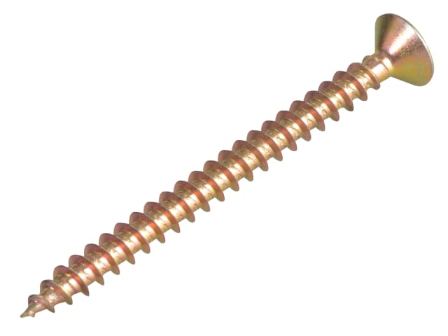 These Forgefix Multi-Purpose Pozi Compatible Screws with countersunk heads have a zinc yellow passivated finish for increased durability.