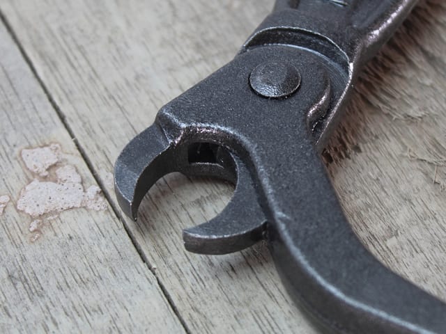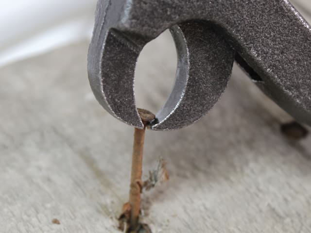 This specialist tool can even extract nail heads recessed below surface level and features a malleable cast iron slide handle with a hinged, drop-forged gripping jaw fixed to a box joint for extra strength.